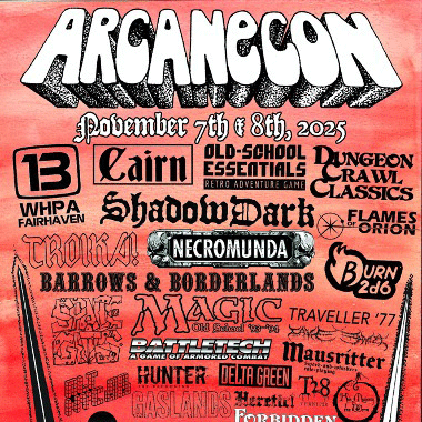 | Dear Fellow Travellers, I come to bring news of a convention in western Massachusetts called ArcaneCon! A convention that celebrates indie games within the old-school, new school, and other schools! Some fellow union folks will be there running games! In the lead up to the event, I’ll be providing some stand out games I’m excited to see at the convention this year! For my first article, I’d like to point everyone towards Barrows & Borderlands: |