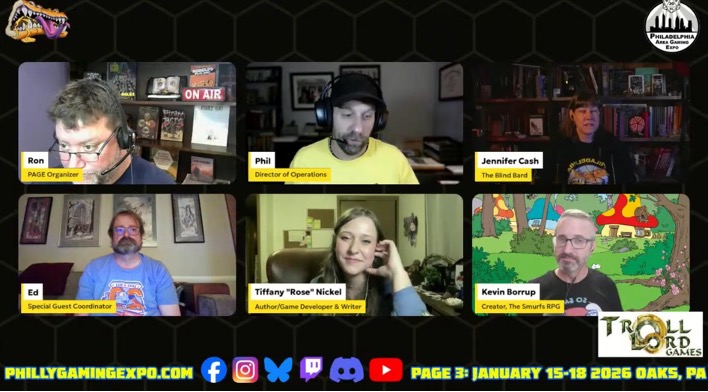 | Friday Night LIVE | | Finally, check out my recent guest appearance on the Philadelphia Area Gaming Expo’s weekly show, Friday Night LIVE, featuring me and “Rose” Nickel from Red Rose Works… plenty of fun! https://www.youtube.com/live/4QqVxM-i-Bk?si=ZBbk7tpNanQjgCcG Kevin Borrup is the owner of Saltheart RPG LLC, an indie game company known for the Golden Fez award winning game, BURN 2d6, and for the creation of the officially licensed The Smurfs Roleplaying Game (produced by Maestro Media). | |