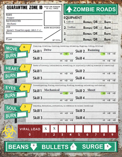 |  | Zombie Roads Character Sheets, First Look |