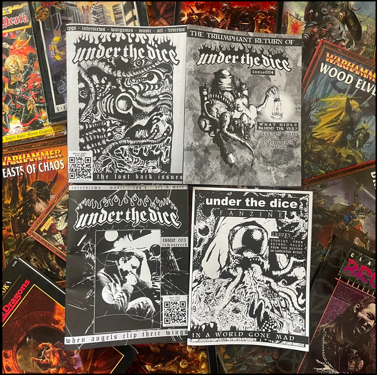 Boy, do I love a zine! And luckily the gaming community is full of them! The corner of the hobby space I tend to lurk around in is full of DIY creators who compile, edit, and do layout for their personal gaming zines just for their fellow hobbyists that is at a creative quality I find a step above anything officially released by larger publishers. The next few newsletters I will be giving my personal take on gaming zines and magazines from across the spectrum I personally enjoy. First Up- Independent and DIY tabletop hobby zines! |  | 28 Mag: 28 Mag is a wild publication not only for its quality in layout, design, and content, but the fact that it is FREE! This magazine makes all other professional game magazines feel extremely dated. The community that has developed around this publication is known as the 28 Community, which is full of artists and creative folks who make their own games, miniatures, and treat the hobby as a place for artistic expression. On top of that, the sense of encouragement and inspiration that drips off of its digital pages blows any other miniature-focused publication out of the water. Each issue functions both as an art magazine while also being a gaming magazine. Incredible. |  | Glaive: A new, full color zine coming straight out of the Hothead Collective in NYC, edited by a gaming enthusiast who creates seriously professional quality publication. Glaive is filled with interviews and opinions on different gaming events, creators, color photo spreads, and related content. While 28 Mag is digital only (except when they release compilation hardcovers), this feels like a high end glossy magazine you can hold in your hand and leave out on your coffee table to impress guests. Glaive feels like a subculture magazine like style magazine, music magazine, or skateboarding magazine but for us subculture types who ended up into RPGs and Wargaming. A glossy and classy mag, available in print! |  | Under The Dice: If Glaive is inspired by high-end color-print subculture magazines, then Under The Dice is the equivalent of a black & white punk/hardcore music zine but focused (mostly) on games! The back issues are in black and white that has a similar aesthetic quality to a Maximum Rock n Roll or HeartattaCk you expect from a photocopied music zine. However, Steve has been putting this one out for years (over a decade now?) and each issue becomes more and more honed in and focused. It still maintains the soul of its roots, but with Steve’s commitment to quality that goes above and beyond, you know you’re going to find something you like in each issue. And personally, it is the first zine I ever submitted written work and artwork to so while I may be biased, this was the zine that made me have an “a-ha” moment that bridged my DIY music background to the DIY gaming space. | | | | | | |  | Ever want to relive a great movie? A24’s The Green Knight was a dark film for sure, but filled with fantastical encounters reminiscent of a roleplaying game. They put out a companion roleplaying game to give you the opportunity to confront the Green Knight yourself. But, how does the game perform?