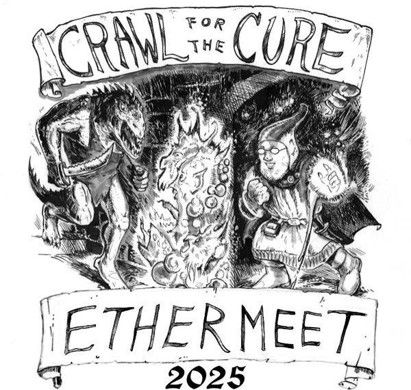 The memorial play-a-thon is in memory of Jerry Stefek: gamer, father, friend and altruist. We tragically lost Jerry to aggressive lymphoma in 2018. ALL proceeds will be given to cancer research and patient assistance through Tiltify to the American Cancer Society! We are just shy of $32,000 as we close out our 6 years of Crawls! We’re still striving to make that goal of $5,000 for Ethermeet 2025 and we challenge our heroes to perform Mighty Deeds for Good.